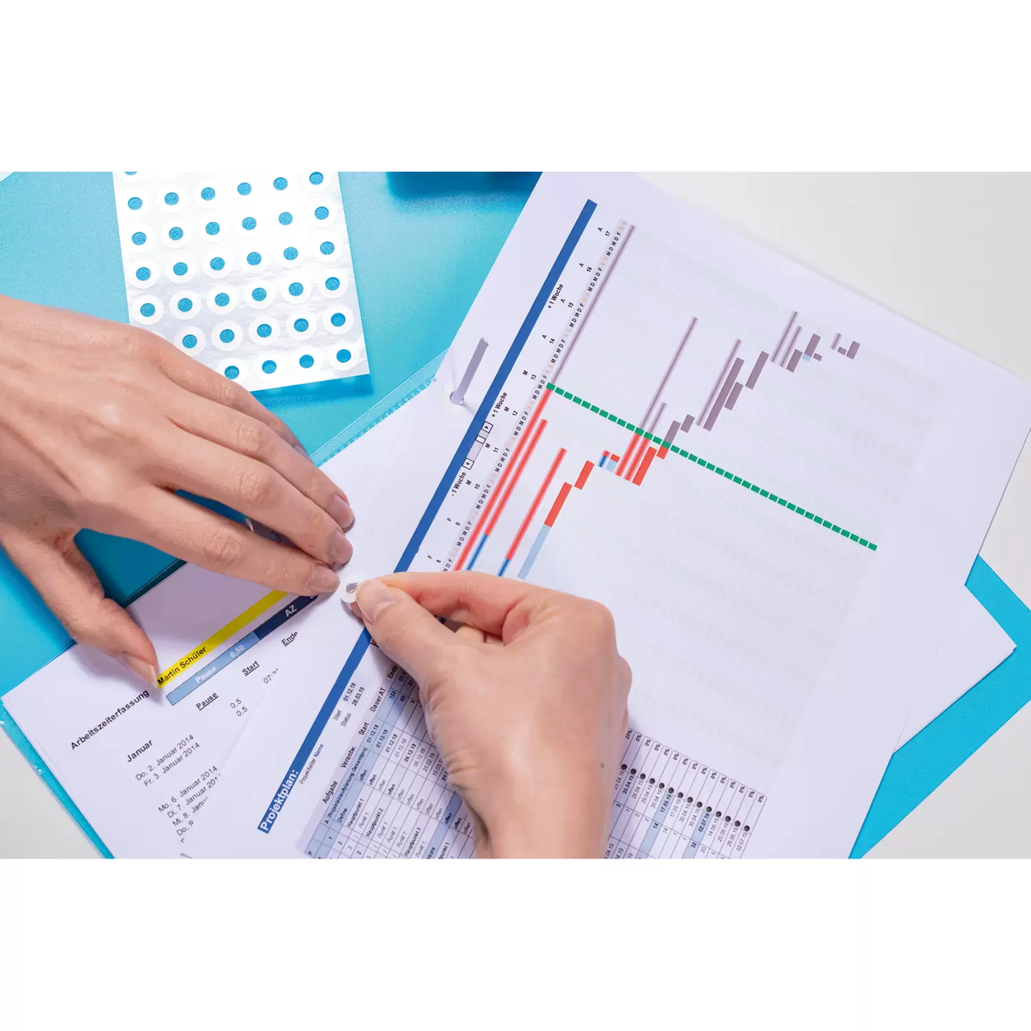 Zelfklevende versterkingsringen van scheurvrije kunststof folie, voorhet repareren van uitgescheurde perforaties. Buitenmaat: doorsnede 12 mm.