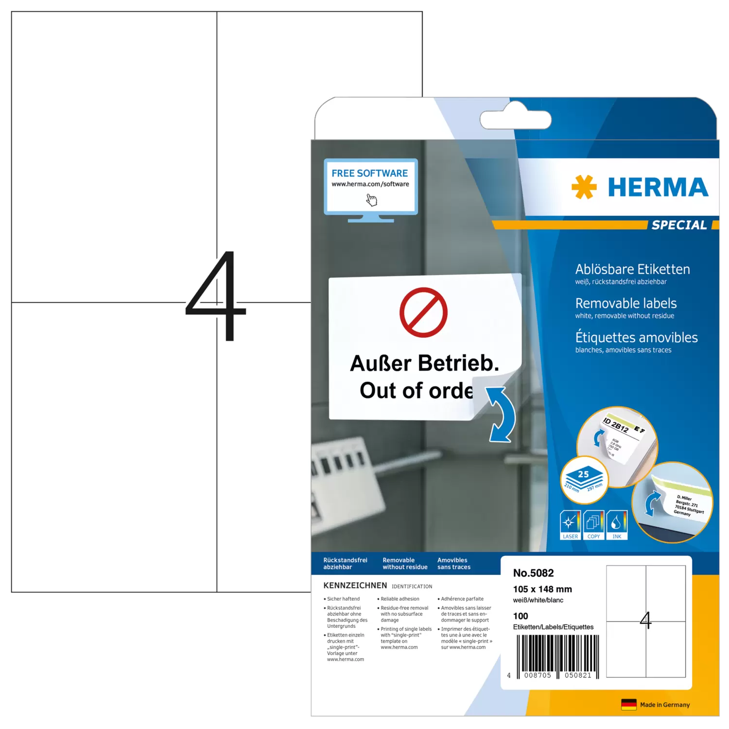 Verwijderbare etiketten, A4, 105 x 148 mm, wit