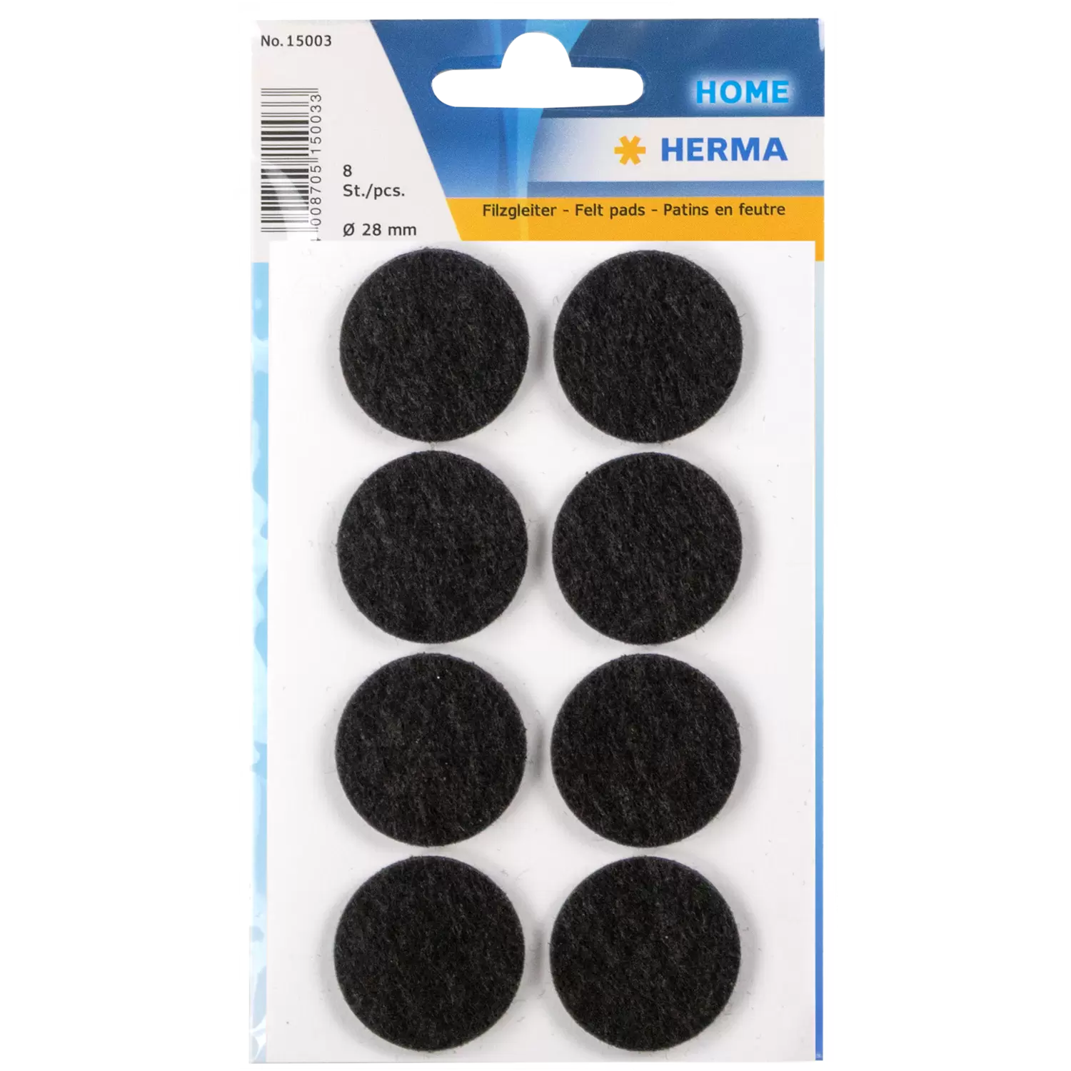 Zelfklevende viltdoppen rond in twee maten en kleuren. Beschermen gevoelige ondergronden tegen krassen en vereenvoudigen het verschuiven van voorwerpen op gladde ondergronden. Ter bescherming van hout, glas, plavuizen en nog veel meer. Maten: diameters 22 mm en 28 mm. Kleuren wit en zwart.