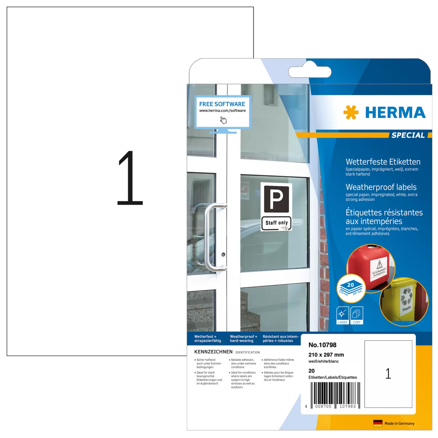 Weerbestendige etiketten, A4, 210 x 297 mm, wit, extreem sterk hechtend, geïmpregneerd