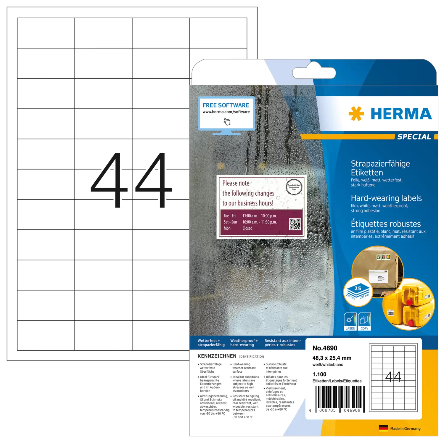 Etiketten slijtvast A4, 48,3 x 25,4 mm, wit, extreem sterk hechtend