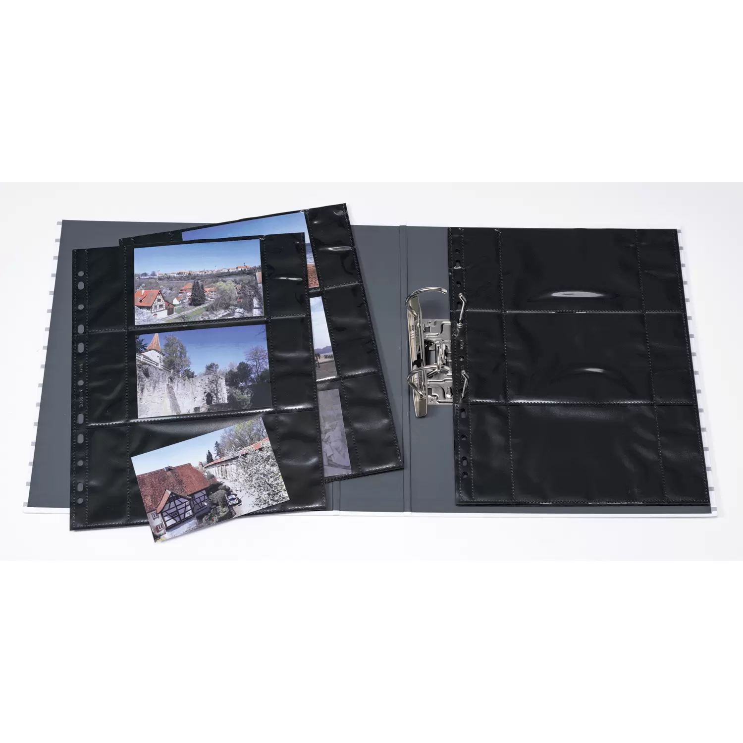 De HERMA Fotophan transparante fotohoesjes zijn de praktische organizers en archiveringshulpmiddelen voor foto's, prentjes, ansichtkaarten, toegangskaartjes en nog veel meer. Gewoon in de transparante vakjes steken en meteen is alles goed opgeborgen - ongecompliceerd en helemaal zonder lijmen! De transparante fotohoesjes zijn gemaakt van stevig zwart polypropyleen, met aan weerszijden opgesealde helder-transparante steekvakjes voor foto's tot 9 x 13 cm liggend formaat. Zo kunnen 6 foto's per hoesje goed en beschermd worden bewaard. De hoesjes zijn absoluut weekmakervrij en archiveringsbestendig, zonder chemische inwerking op de foto's. Elke verpakking bevat 10 hoesjes met plek voor 60 foto's. Dankzij de praktische europerforatie kunnen ze in alle gangbare ordners, albums en ringbanden voor DIN A4-formaten worden opgeborgen. Ideaal zijn de HERMA Fotobooks, verkrijgbaar in 5 prachtige kleuren. Perfecte bescherming, absoluut vrij van vuil, vouwen of vingerafdrukken.