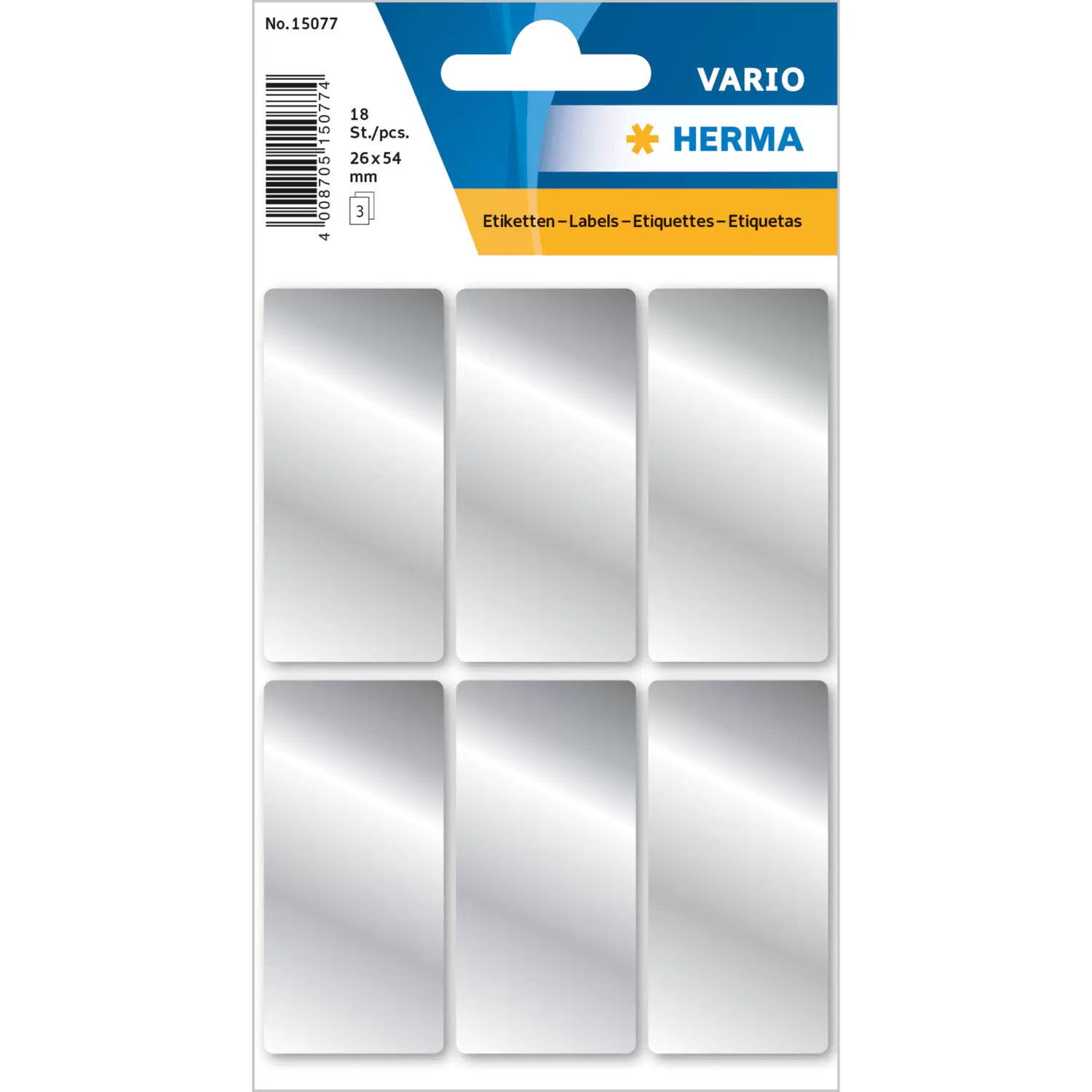 Multipurpose-etiketten, 26 x 54 mm, zilver, permanent hechtend, om met de hand te beschrijven